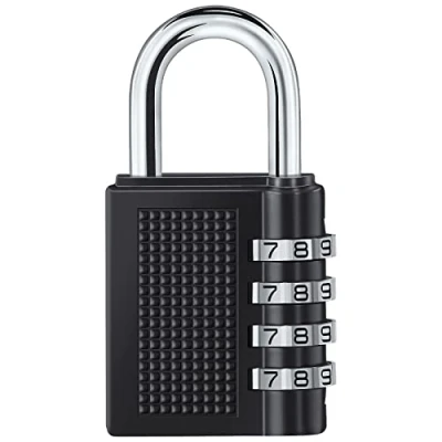 Vinabo Candado numerico 4 Digits Combination, Numeric Backpacks and Suitcases, Gym, School Locker, Luggage Security Padlock, Black/White