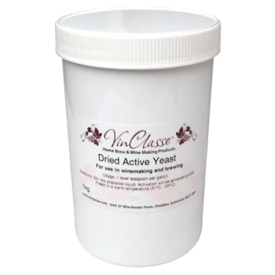 1Kg Bulk Tub Of Dried Active Yeast For Use In Winemaking & Brewing. Useage - 1 Level Teaspoon Per Gallon. Directions - Stir Into Prepared Liquid. Activation Will Be Achieved Quickly If Kept In A Warm Temperature (21 - 24 Degrees). 'Gluten Free' Tony's TipsThe main-stream yeast that's good for all types of Homebrewing Beer and Wine, endorsed by Balliihoo's own brand name "VinClasse", your guarantee of the very best quality yeast available. Always keep a spare Tub on the brewing shelf.