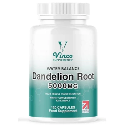 Vinco Dandelion Root Capsules 5000mg 120 Vegan (4 Month Supply) High Strength Herbal Supplement for Bloating & Detox Water Retention Tablets Natural Balance Support