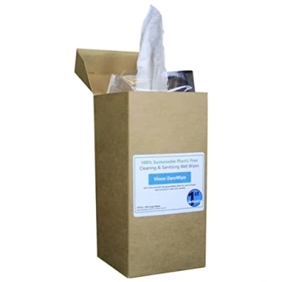 Vinco ZeroWipe Plastic Free Dispensing Box 100 Wipes, White