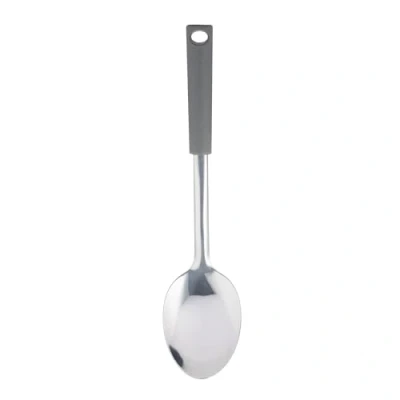Viners Soft Grip Solid Spoon Stainless Steel Cooking with Touch Handle, Hanging Loop & Dishwasher Safe Design Grey Silver Kitchen Utensil