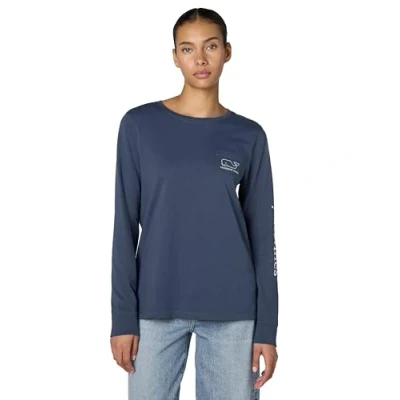 Vineyard Vines Women's Long Sleeve Vintage Whale Pocket Tee, Blue Blazer, S