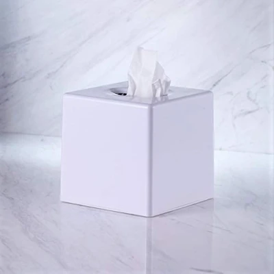 VINN DUNN BESPOKE CUBE Tissue Dispenser white, Square Box Cover Holder Kleenex Napkin Bathroom Organizer Stand Plastic ABS