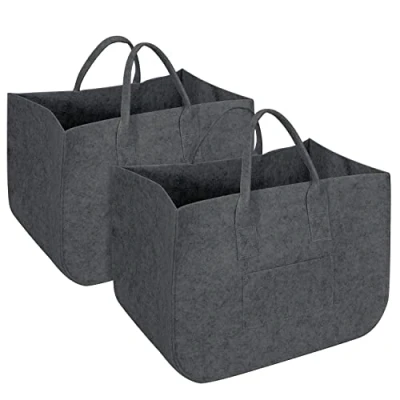 Vinsani 2 Pack Felt Storage Baskets Multifunctional Foldable Large Open Bags with Strong Handles Laundry Hamper Shopping Tote Bag for Firewood Toys Books Clothes Newspapers Dark Grey