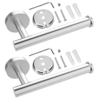 TOILET PAPER HOLDER SOLUTION: Our toilet holder is a perfect balance of minimalism and simplicity. It can be mounted vertically or horizontally to save space and it can hold any size of paper roll. Non-intrusive, fits in small spaces, and complements any home décor. PREMIUM MATERIAL: It is constructed of premium stainless steel that has been finished to prevent rusting and corrosion, providing durability and reliability. It is also waterproof and simple to clean. ROTATE-PROOF: Our stainless-steel toilet paper holder features a sleek rotate-proof locking design with screw tightening on the bracket to prevent rotation and maintain it upright and affixed for a long time. There would be no tilting or falling off! EASY TO INSTALL: Install on the walls or beneath the cabinet either vertically or horizontally. Mounting screws, anchors, an allen key, and a bracket are included in the package. To firmly place the holder, use the provided screws. VERSATILE: Our toilet paper holder is designed to the highest specifications for strength and durability in moist conditions, making it excellent for bathrooms, kitchens, hotels, bedrooms, and closets.