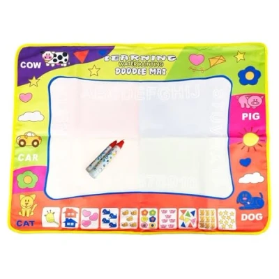 LARGER DRAWING AREA: This water doodle mat measures 80 x 60 cm (approx). Large size offers enough space for kids to write and draw together. The doodle mat can also be folded into a compact size which is easy to carry in backpacks while travelling. ABUNDANT ACCESSORIES: It comes with everything you need for getting children creative without making a mess! The mat erases the doodle after a few minutes, leaving the children to keep on doodling without leaving a stain! The magic water drawing mat comes with 2 magic water pen. Safety Warning - Item must be used on adult supervision and is suitable for 3 years and over. NON-TOXIC MATERIAL: This doodle mat is made of high-quality durable polyester non-woven fabric. The back of the doodle mat is made of water-resistant PVC material for stress free, clean drawing sessions, spoiling the walls, just filled with clean water in magic pen to start drawing. Cleaning and safety. NO INK, NO PAINT, NO CRAYONS: Just fill the magic pen with clean water and start drawing on the drawing mat! The design will disappear after 5-10 minutes (depending on the temperature and air flow), kids can draw on doodle board mat again and again. Brilliant for toddlers, the pens only work on the mat, so your kid can't make any mess on carpets or walls. GREAT EDUCATIONAL TOY FOR GIFT: Inspire your kid's creativity and imagination, hand-eye coordination & the colour perception ability. A great birthday or Christmas gift for both boys and girls.