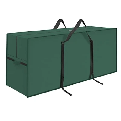SAFEKEEPING FOR YOUR CHRISTMAS TREE: Keep your artificial tree clean and dust-free with this Christmas tree storage bag. It helps prevent damage such as torn cables on pre-lit trees, bent branches, lights, tinsels, or baubles. The ideal solution for storing your Christmas tree clean, safe, crease-free, together, and ready for the next holiday season. WATERPROOF & DUSTPROOF: It is made from PVC-coated 600D waterproof tear-resistant oxford fabric. It has black trim carry handles and a twin zip closure that ensures secure storage for your goods. MULTIFUNCTIONAL: Ideal accessory to prevent your tree from getting damaged or losing parts like stand or transformer. It is big enough so it can also be used to store other household items. STURDY BASE & FOLDABLE: This bag has a sturdy design that keeps it upright when filled with items. When not in use it can be folded for easy storage. FOR SECTIONAL TREES - Designed to Store Dismantled Christmas Trees Up to 9ft (274cm) Tall (Sections should be no more than 125cm) Storage bag measures 49.5 x 64 x 147 cm approx. The size of this fabric storage bag and the durable handle give ample storage space to carry your Christmas tree and decorations around.