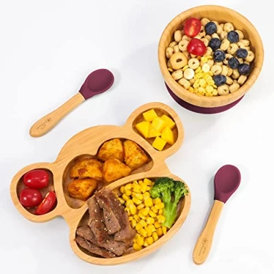 3-SECTIONED PLATE: Comes with a set of a plate, bowl, and 2 spoons. The 3 sectioned plate is convenient for serving various food groups and encouraging weaning. They are fantastic for assisting parents in preparing balanced meals. ALL-NATURAL BAMBOO: Made from all-natural hypoallergenic bamboo and food-grade silicone to protect your child from BPA, phthalates, and other toxins. POWERFUL SUCTION BASE: Non-slip base / Stay-put design that will stop your kids from moving their plates and spilling food. Silicone suction base will ensure your kid’s plates will stay where they are meant to at mealtimes. ANTI SCALDING & EASY TO CLEAN: Deters burns to baby's delicate fingers if they reach out for it during feeding. Just with warm soapy water or place in the dishwasher. Silicone placemat resists stains and does not absorb flavours. DIMENSIONS: Our bamboo suction plates fit most highchairs. Measurements: Plate: 18.5 x 24 x H 5 cm (7.3 x 9.4 x 2 in) Bowl: 13.6 x 6.8 (5.3 x 2.7in) cm Spoon: 14.2 x 3.4cm (5.6 x 1.3 in), Weight: 1.433004703 pounds, Manufacturer: Vinsani
