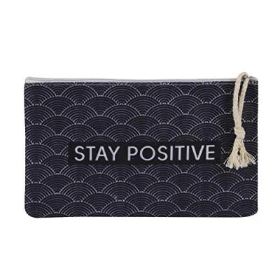 Vinsani Cotton Polyester Makeup Bag Cosmetic Pouch Portable Toiletry Organizer Pencil Case for Travel School Office Festival Birthday Stay Positive