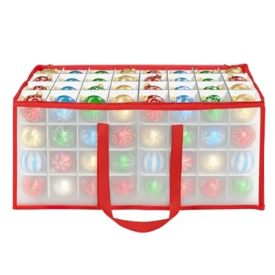 Vinsani Red 128 Bauble Christmas Tree Decoration Storage Box Foldable Ornament Organiser with Zip Closure & Side Handles Secure Dust Free Xmas Décor 59 x 30.5 28 cm (Red)