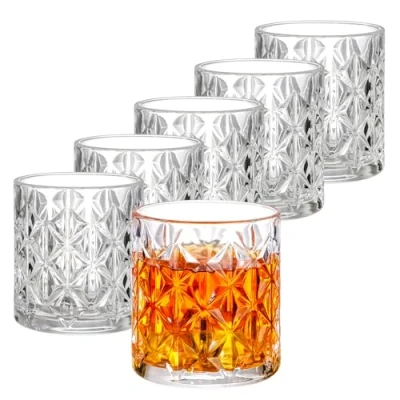 Vinsani Set of 6 Royal Whisky Tumblers 300ml Glasses Crystal Cut Transparent Vintage Whiskey Rum Cocktail Drinkware Bar Gift for Men Women