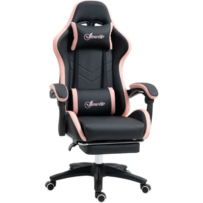 Vinsetto Computer Gaming Chair, PU Leather Desk Chair with Footrest, Swivel Task 135 Reclining Back and Lumbar Support, PC for Adults, Black Pink