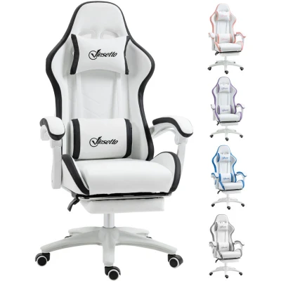 Vinsetto Computer Gaming Chair, PU Leather Desk Chair with Footrest, Swivel Task 135 Reclining Back and Lumbar Support, PC for Adults, White Black