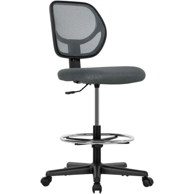Vinsetto Drafting Chair with Adjustable Footrest, Swivel Mesh Office Curved Back, Height for Standing Desk, Charcoal Grey