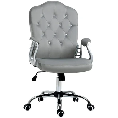 AmazonGlam design: Grey computer chair features an abundance of diamantes on the tufted back. Add some sparkle and fun to your work time. Comfortable and supportive: Filled with foam padding and wrapped in velvet-feel upholstery, this home office chair is a pleasure to use. Back and armrests support you as you sit. Adjustable tension tilting back: Super easy to adjust the reclining angle, with just the right amount of pressure on this swivel chair - controlled via the knob. 47-57cm adjustable height: Set this office desk chair to a position you like. Easy to match your desk level so you don't strain yourself. Dimensions: 104 -114H x 61W x 61D cm. Seat: 47 -57H x 51W x 47D cm. Maximum load 120 kg. Assembly required. It's BS5852 qualified.