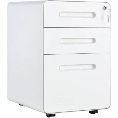 Vinsetto Lockable File Cabinet with 3 Drawers, Vertical Office Drawer for A4, Letter, Legal Size, Anti tilt Design, Pre Assembled Body, White