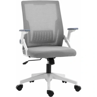 Vinsetto Mesh Office Chair, Desk Chair with Lumbar Support, Flip up Armrest, Swivel Wheels, Adjustable Height, Grey
