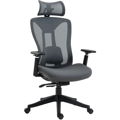 Vinsetto Mesh Office Chair, Ergonomic Desk Computer Chair with Adjustable Headrest and Lumbar Support, 135 Reclining Back 3D Armrest for Home Study, Grey