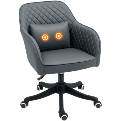 Vinsetto Microfiber Office Chair, Desk Makeup Vanity Chair with Massage Lumbar Pillow and Rolling Wheels for Bedroom Home, Grey