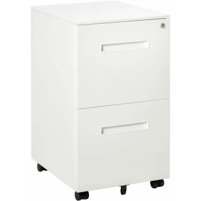 Vinsetto Mobile Steel File Cabinet, 2 Drawer Filing Vertical Lockable Home Office Organizer with Adjustable Partition for A4 Letter Size, White