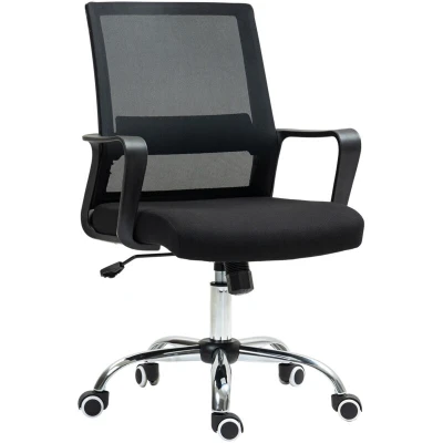 Vinsetto Office Chair with Adjustable Height, Breathable Mesh Desk Armrest and 360 Swivel Castor Wheels, Full Black