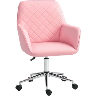 Vinsetto Office Desk Chair, Leather Feel Fabric Computer Swivel Chair with Rolling Wheels and Adjustable Height for Home, Pink