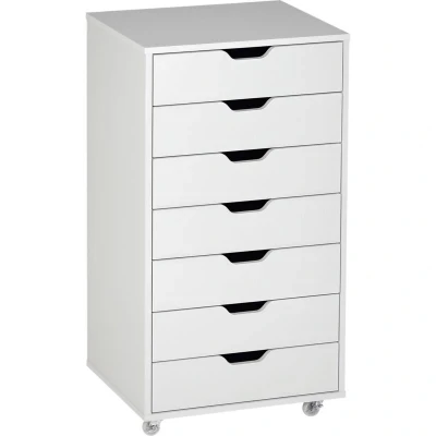 Vinsetto Vertical Filing Cabinet, 7 drawer File Mobile Office Cabinet on Wheels for Study, Home Office, White