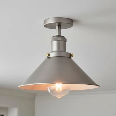 Design: Flush ceiling light featuring with a spray painted finish bringing a classic touch to your home. The conical shade with an open bottom fully exposes the bulb for a bright glow, and easy bulb replacement. Dimension: Kitchen lights ceiling with a 10cm height, 22cm shade width 9cm holder and 10cm ceiling rose, is a compact size for all room sizes. Metal Construction: Close to ceiling lights fixture is made from durable metal body built to withstand daily use, ensuring long-lasting strength and reliability in busy interior spaces. Easy Fit: The ceiling light fixtures fits with all E27 base bulb, supports max of 60W it includes mounting hardware and instruction guide, You can easily complete the set up of the ceiling lighting in just a few minutes. Applications: Vintage ceiling lighting Ideal for bedrooms, hallways, and living areas, fitting both vintage and modern decor.