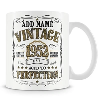 Vintage 1952 Aged to Perfection Mug Personalised Gift with Name