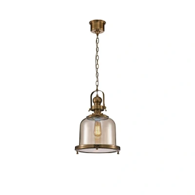 Vintage is an ornate, bell shaped glass lantern. The antique brass frame creates a traditional fitting, made in three sizes to suit your chosen space (26cm, 33cm or 38cm). The amber glass shade is the focal point that reduces the glare from the lamp. The bottom frame is hinged as part of the design concept but also allow easy access to the lamp. The unique ceiling box is showcases the attention to detail and design.
