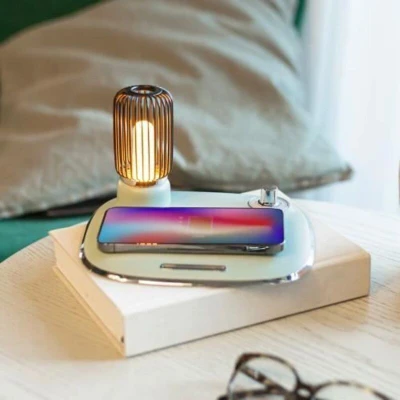 2 in 1: fast charge induction charger and bedside lamp for a cozy ambiance.