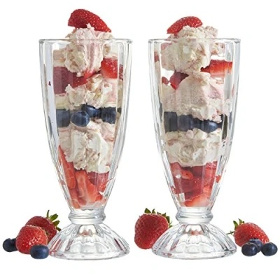 Vintage Gourmet (TM) Tall American Retro Style Soda Fountain Ice Cream Knickerbocker Glory Dessert Sundae Milkshake Glasses 340 millilitres, Set of 6