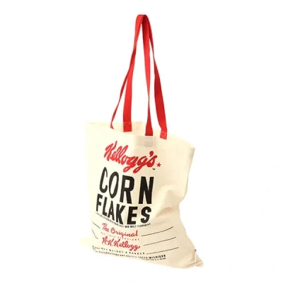 The Vintage Kellogg's Cornflakes tote bag by Dexam is made from 100% cotton and features a bright and colourful design featuring a vintage style cornflakes cereal box print.The tote bag features a pair of large looped handles, perfect for carrying on your shoulder and is a nice generous size for grocery shopping or popping in a car or a handbag for a quick shopping top up.The cornflakes tote bag is suitable for machine washing at 40°C and can be matched with other items in the collection (sold separately).Complete with a 2 year manufacturers guarantee. Size: 48 x 38cm.