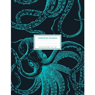 Vintage Octopus Green: Ocean Sea Life Notebook College Ruled 8.5x11" LARGE 100 Lined Pages