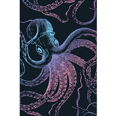 Vintage Octopus Journal: Ocean sea life themed notebook blue lined 6x9 150p
