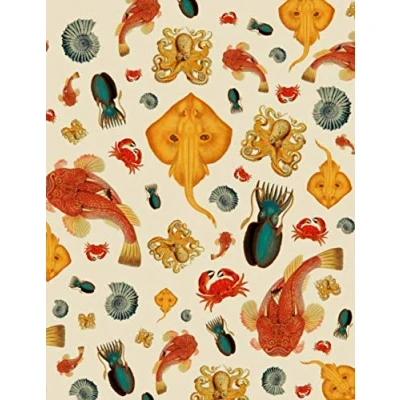 Vintage Sea Life Animals Sketchbook: Ocean Sketchbooks With Squid, Manta Ray, Crabs, Shells And Octopus 8.5x11" LARGE 110 Blank Pages