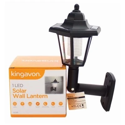 SPECIFICATIONThis wall lantern is manufactured from PP & PS material with a 2V/40mA solar panel. It comes with a whiteLED 11000-13000mcd & requires 1 x AA 1.2V 600mAh NiMH battery.Approx Size: 12.5 x 12.5 x 18.5cm IP44 CE ApprovedBARCODE 5017403 046929CARTON QTY 48/12 Pcs APPROX ITEM WEIGHT 229gPACKAGING Colour Box