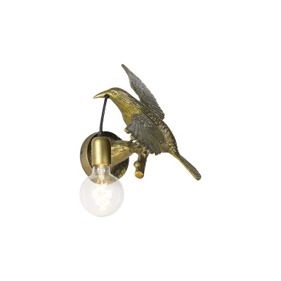 General description The QAZQA Vintage Wall Light Brass - Animal Fugl is a stunning decorative lamp that captures attention with its unique design. This fun gold/brass bird lamp, made of aluminum, sits on a branch and adds a charming touch to any interior. It is perfect for those who appreciate botanical and vintage styles, making it a trendy addition to your home. Technical specifications Weight: 1.8 kg Dimensions: Length 18 cm, Height 50 cm, Depth 50 cm Bulb holder: E27 Maximum wattage: 1 x 25 W Voltage: 220V/230V Protection class: IP20 Dimmable: Yes (dimmer not included) Light source: Excluded Compatibility and accessories Suitable for: Incandescent, Halogen, LED, Energy saving bulbs Usage This lamp is ideal for various living spaces, including the dining room, hallway, office/work area, kitchen, store/showroom, bedroom, and living room. It is designed to enhance the atmosphere of your interior with its beautiful light. Other information