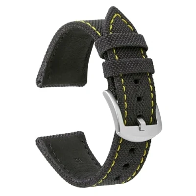 Replacement Wrist Watch Strap in Luxury Padded Canvas for Extra Comfort. Supplied with Spring Bar Removal Tool, Watch Pins and VintageTime Box. Calf Leather Lining and Contrast Stitching. Stainless Steel Buckle with a Brushed Steel Finish. Local British Company - Vintage Time Watches