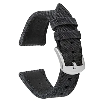 VintageTime Watch Straps Canvas Sports Leather Lined Replacement Bracelet Stainless Steel Buckle Choice of Width & Colours 18mm, 20mm, 22mm or 24mm Bands (24mm, Black/Blue)