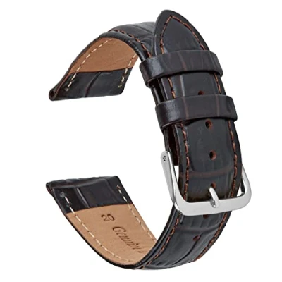 VintageTime Watch Straps Croc Grain Genuine Calf Leather Bracelet Stainless Steel Buckle Choice of Width & Colours 14mm, 16mm, 18mm or 20mm Bands (18mm, Brown Buckle)