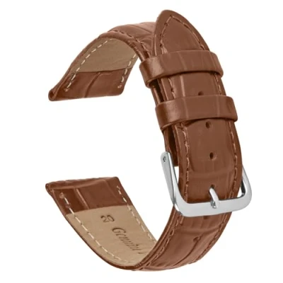 VintageTime Watch Straps Croc Grain Genuine Calf Leather Bracelet Stainless Steel Buckle Choice of Width & Colours 14mm, 16mm, 18mm or 20mm Bands (22mm, Tan Buckle)