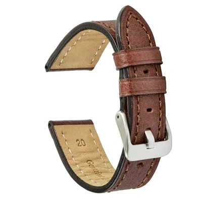 VintageTime Watch Straps Genuine Buffalo Grain Calf Leather Semi Shine Finish Bracelet Stainless Steel Buckle Choice of Width & Colours 18mm, 20mm, 22mm and 24mm Bands (24mm, Dark Brown)