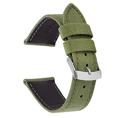 VintageTime Watch Straps Genuine Cordura Fabric Military Style Leather Lined Replacement Band 18mm, 20mm, 22mm, 24mm (24mm, Green)