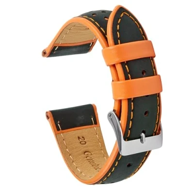 VintageTime Watch Straps Genuine Italian Rally Sports Racing Style Calf Leather Bracelet Stainless Steel Buckle Choice of Width & Colours 18mm, 20mm, 22mm Bands (20mm, Black/Orange)