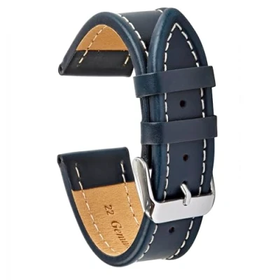 VintageTime Watch Straps Smooth Grain Heavy White Stitch Leather Replacement Bands 18mm, 20mm, 22mm Choice of Width and Colours (Blue, 18mm)