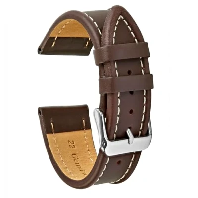 VintageTime Watch Straps Smooth Grain Heavy White Stitch Leather Replacement Bands 18mm, 20mm, 22mm Choice of Width and Colours (Brown, 18mm)