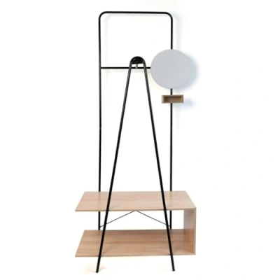 Coat rack with shelves and mirror model MOA brand Vinthera. Black steel with a special anti-rust finish for durability Measures 76 x 40 x 180 cm Perfect for placing in hallways, bedrooms and living rooms Instructions for use available at the following link: Instruction manual