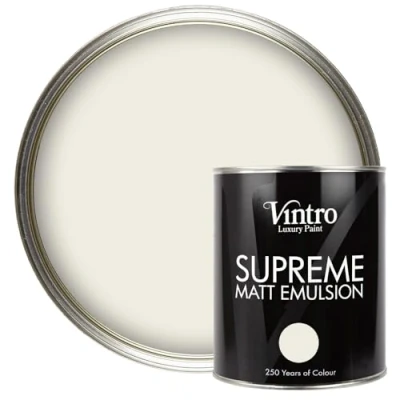 Luxury paint for interior walls and ceilings or primed woodwork. Water-based & Low VOC (Volatile Organic Compounds) makes it safer to use and eco-friendly. Virtually odourless so no nasty smells. Stunning colours using exceptionally high pigment levels to give an enhanced depth of colour and superior coverage. Usually 1 - 2 coats is all that is needed. Coverage: 15m2 Very durable and easily wipes clean., Manufacturer: Vintro Paint