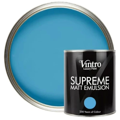 Vintro Luxury Matt Emulsion Blue Smooth Chalky Finish Multi Surface Paint for Walls, Ceilings, Wood and Metal 1L (Blue Trinity)